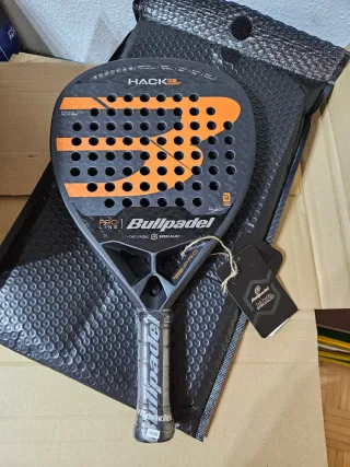 Pala de pádel Bullpadel Hack 03 24 Comfort. Nueva a estrenar con factura y garantía. - Diseño en negro y naranja. - Incluye funda protectora. - Con etiquetas originales.