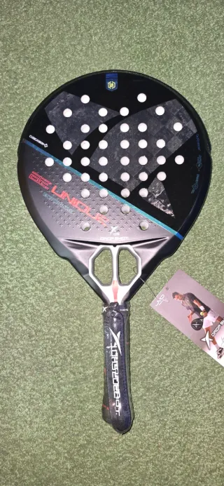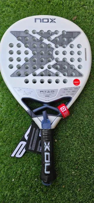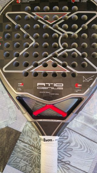 Vendo esta Nox AT10 Genius 18K, el modelo de Agustín Tapia de la temporada 2023. Es una pala súper completa, va genial tanto para defender como para atacar porque tiene un balance muy cómodo. Al ser la versión 18K tiene un tacto increíble, con carbono real en las caras y superficie rugosa tipo arenilla que ayuda mucho a darle efecto a la bola. Además, lleva el sistema antivibración, así que no carga nada el brazo. Tiene algunos arañazos, pero todo es pintura y superficial. Cualquier cosa no dudéis en contactar.