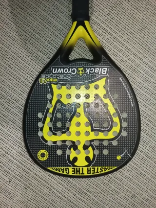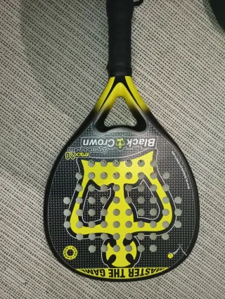 Pala de pádel Black Crown Anaconda Attack 2.0 con un diseño llamativo en negro y amarillo. Solo se ha usado como nivel principiante y muy poco ya que no me terminó de gustar el pádel y tendrá 6 o 7 partidos con mi mujer y otra pareja de amigos. En perfecto estado, no tiene nada roto, ni grietas ni nada, solo algún pequeñísimo roce, tal cual está en las fotos.