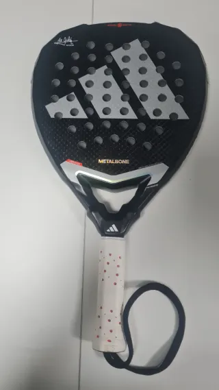 Pala de pádel Adidas Metalbone 3.1 con un diseño moderno y llamativo. - Marco con tecnología Metalbone para mayor rigidez. - Superficie con acabado rugoso para potenciar los efectos. - Goma Soft Performance para un tacto más blando. Tiene pequeñas picaduras por no ponerle protector, pero esta bastante bien y No muy usada. ya que la tengo de segunda pala.
