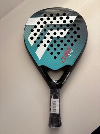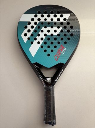 URGE VENDER. Pala de pádel Tecnifibre Curva Team con un diseño moderno y llamativo. PVP 140€ - Superficie con acabado mate. - Marco negro. - Detalles en color turquesa y blanco. se vende porque la gané en un torneo y ya tengo una.