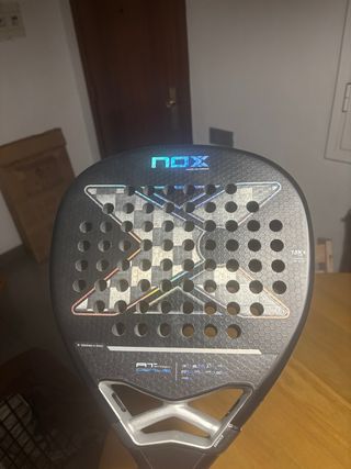 Vendo pala NOX LA10 Quantum 18K Luxury Series, usada solo un partido. Está en perfecto estado funcional, con el plano, el marco y el puño intactos. Únicamente presenta una pequeña marca estética en la parte superior (visible en la foto). Pala de gama alta, potente y muy cómoda.