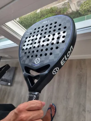 Pala de pádel Elon Pro 1, diseñada para precisión, potencia y control en su máxima expresión Diseño en forma de diamante, ofreciendo golpes potentes y agresivos con total precisión. Fabricada con carbono 18K completo, equilibra rigidez y flexibilidad para brindar una sensación única en la mano, ofreciendo una respuesta rápida y un control absoluto en cada jugada. Me la dieron en un torneo y está nueva sin usar