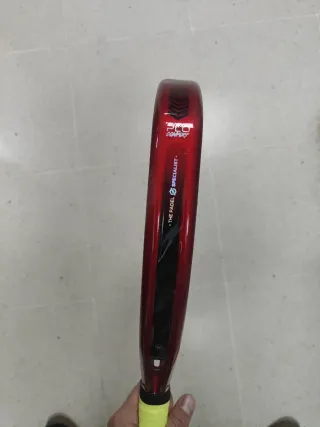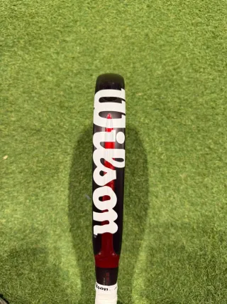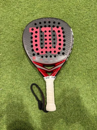 Pala de pádel Wilson Bela Pro V3, en perfecto estado. Es una pala que al tacto durante el juego se siente dura y seca pero con una muy buena salida de bola, muy liviana, un rugoso 3D y arenoso para imprimir mayor efecto a los golpeos y protector en la parte superior para evitar posibles arañazos. En el fondo de pista la sensación es la de una pala muy manejable y con la que se puede defender de manera muy cómoda. - Diseño en negro y rojo. - Empuñadura blanca. - Incluye cordón de seguridad.