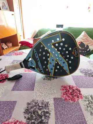 Pala de pádel Kombat Teide modelo 2025. Tacto medio duro, pala muy buena para tener tanto control como potencia! Rozones típico de juego que no afectan completamente en nada solo visual de ahí el precio acorde a eso. Vendo por regalo de una nueva. Gente seria porfavor