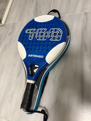 Pala de pádel Artengo modelo 700. - Color azul y blanco. - Incluye funda. No se ha usado nunca, pero tiene algún rasguño mínimo (se puede ver en las fotos) de haberla tenido guardada y movido tiempo.