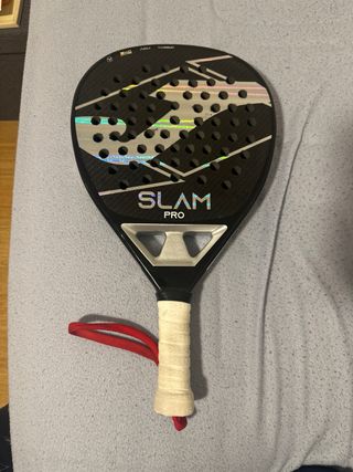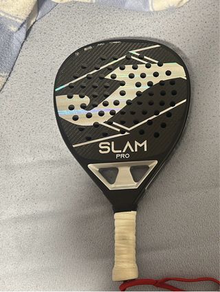 Pala de pádel marca Joma, modelo SLAM PRO. Diseñada con un acabado en carbono y detalles holográficos. - Pala de pádel Joma. - Modelo SLAM PRO. - Acabado en carbono. - Detalles holográficos.