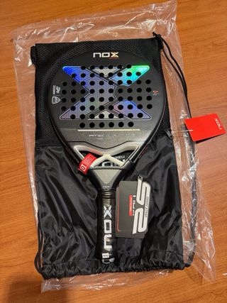 Pala de pádel NOX modelo 2025, completamente nueva. PRECIO NO NEGOCIABLE - Diseño moderno en color negro. - Incluye funda. - Ideal para jugadores de nivel avanzado.