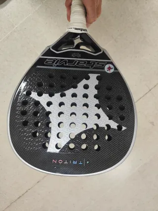 Se vende pala de pádel StarVie Triton Soft del modelo 2025 de carbono. Rugoso 3D en las caras. Ultimo modelo de Starvie fabricado a mano en España. Peso 359g. Pala muy manejable con muy buen control, manejabilidad y gracias a su forma y puño largo ayuda a los remates. Se vende por cambio de pala. Comprada hace 2 meses Nox, bullpadel, lok, kuikma, babolat, adidas, head, oxdog.