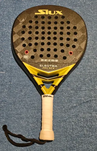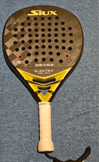 Pala de pádel Siux Electra Pro ST3. - Pala con acabado brillante. - Diseño en negro y amarillo. - usada 5 clases algun rasguño pequeño y un toque de pintura nada mas