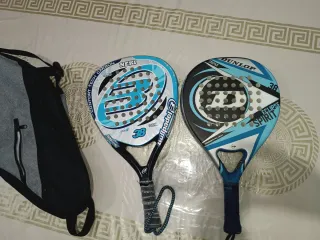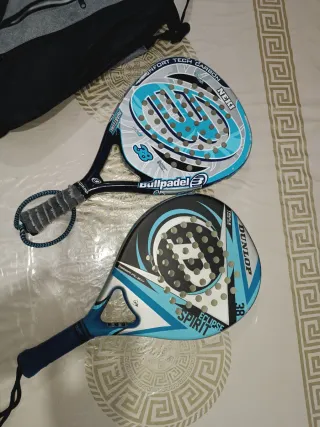Pala Bullpadel: presenta tecnología "Nerv" y construcción "Infort Tech Carbon". Pala Dunlop Spirit Eclipse: diseñada para jugadores de nivel intermedio, presenta un perfil de 38 mm y núcleo Mega Flex para potencia y confort. Ambas palas están diseñadas para el deporte del pádel, que es similar al tenis pero se juega con palas de mango corto. La pala Dunlop incorpora tecnología Aerogel para reforzar el marco.