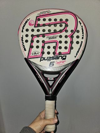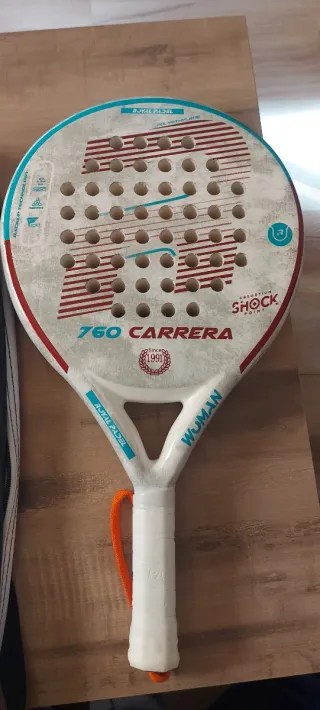 Pala de pádel Royal Padel modelo 760 Carrera. Usada 5 minutos. Me tocó en el sorteo de un torneo. - Tecnología absorción shock - Perfecta para problemas de codo - Incluye funda. - Modelo Woman.