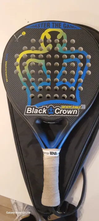 Pala de pádel Black Crown Piton prácticamente nueva. Ideal para jugadores de nivel intermedio-avanzado. - Diseño elegante en negro y dorado. - Impecable estado de conservación. - Lista para usar.