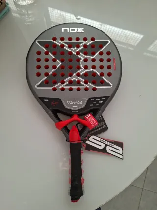 Pala de pádel Nox modelo TL 10 Quantum. comprada en julio. roces típicos del juego que no afectan al rendimiento. - Diseño con acabado en carbono 12K+. - Marco con tecnología DCS O. - Superficie con acabado rugoso.
