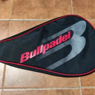 Funda para pala de pádel de la marca Bullpadel. Diseño en color negro con ribete rojo. - Cierre con cremallera. - Correa ajustable para colgar. - Logo de la marca en color rojo y blanco.