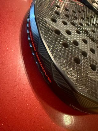 Pala de pádel Adidas en buen estado. - Diseño con acabado en carbono. - Detalles en color naranja. - Marco con inscripción POWER GROOVE.