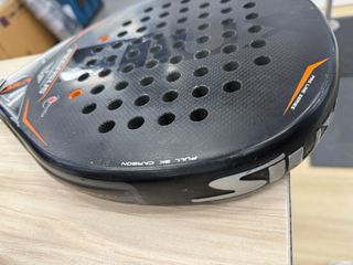 Pala de pádel Babolat Technical Veron de Juan Lebron. - Superficie con acabado 3D Spin. - Marco de carbono. - Tecnología Vibrasorb System. Pala de padel Babolat Technical Veron. Forma diamante, tacto medio y usada por amateur que juega muy poco (5 veces al año). Esta en plenas condiciones de uso, si no no la vendería pero presenta pequeño golpe estético en la parte superior. La vendo barata por el desperfecto. Preguntad sin compromiso.