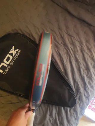 Pala de pádel NOX Bahía con funda. - Pala de pádel NOX. - Modelo Bahía. - Incluye funda. La pala se compró aze menos de un año nueva tenía una pequeña grieta que se reparo