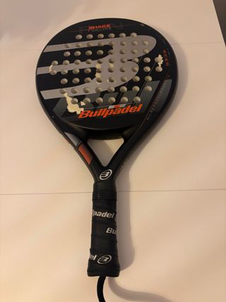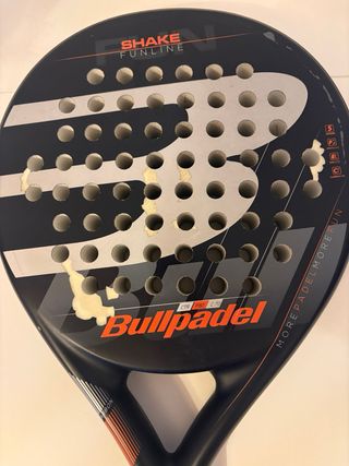 Pala de pádel Bullpadel en color negro. Tiene algun desconchón pero está en condiciones. - Pala de pádel Bullpadel. - Color negro con detalles en naranja y gris. - Logo de Bullpadel en el centro y en el grip.