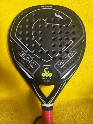 Pala de pádel Vibora Black Mamba. pala rota con claro signos de uso (se aprecia la rotura en la primera y última imagen) que habría que reparar, de ahí su precio