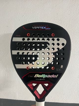 Pala de pádel Bullpadel Vertex 03, completamente nueva, la vendo con una funda que es también nueva. - Pala de pádel Bullpadel. - Modelo Vertex 03. - Nueva a estrenar.