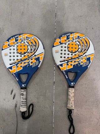 Se venden dos palas de pádel junior. - Diseño con detalles en azul, blanco y naranja. - Marca BASEL. - Modelo MID LINE. - Tamaño 33 10€/unidad