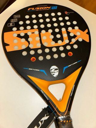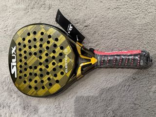 Vendo pala de pádel Siux Platinum Revolution 24K en estupendas condiciones. Es una pala de gama alta, cuyo precio original era de 399. La compré en Reyes de oferta x 149,(usada 7 meses).La vendo tan barata porque tiene los típicos roces de la valla en la parte superior . Es un palon. - Modelo: Siux Platinum Revolution 24K - Material: Carbono 24K - Peso: Ligera - Diseño: Negro y naranja