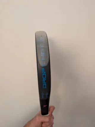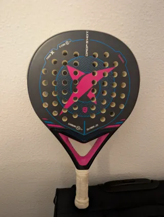 Pala de pádel Drop Shot con diseño moderno y llamativo. Usada solo dos partidos. Practicante nueva. - Pala de pádel para mujer. - Marco con tecnología E-Core. - Superficie con DS-Fiber y Carbon. - Núcleo EVA Pro para un buen balance.