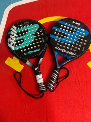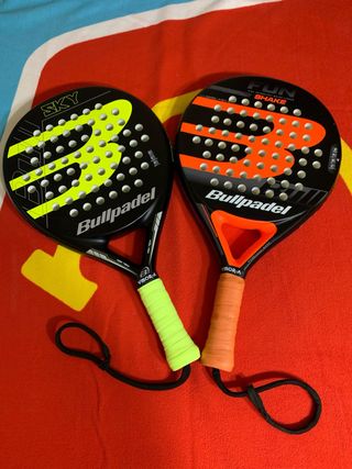 Bullpadel Sky : 1 partido de uso Totalmente nueva e impecable Bullpadel X Compact 2: Tiene algún saltito de pintura en las caras Meramente estético No afecta en absoluto al juego El precio es por las 2 palas “ No se venden por separado”
