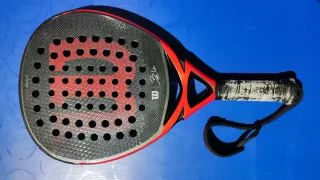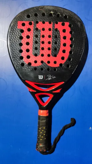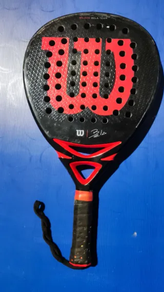 Pala de pádel Wilson Bela LT. Muy ligera. 356g sin cuerda. Balance medio. Pala con uso pero funcional. Tiene golpes y rozaduras en el marco del uso. Lleva asi tiempo y aguanta bien. Pero de ahi el precio bajo. Ideal para probar el modelo. Repito; mirar bien las fotos en detalle de los roces que tiene!!