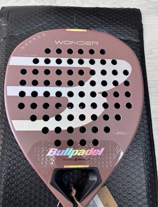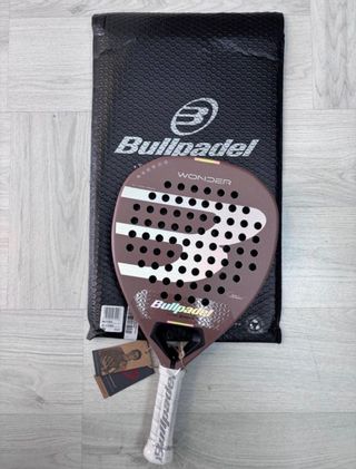 Pala de pádel Bullpadel Wonder con un diseño moderno y llamativo. - Color marrón y blanco. - Diseño con el logo de Bullpade