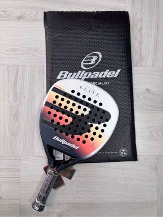 Pala de pádel Bullpadel Elite Woman. - Diseño moderno y llamativo. - Acabado en blanco con detalles degradados en tonos rojizos y azules. - Agujeros característicos de las palas de pádel.