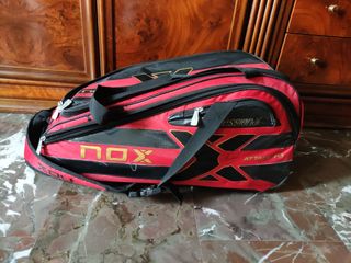 Mochila NOX Pádel Attack P-1 edición Miguel Lamperti. Color Rojo y con innumerables bolsillos, tanto para guardar las palas, ropa y zapatillas. Así como varias formas de llevarla con las asas. Cuenta también con una bolsa de tela pequeña para ropa. Nueva, en perfecto estado. Tamaño: largo 70 cm y ancho 35 cm aproximadamente. En las fotos se pueden ver todas sus partes y bolsillos. ********* ÚLTIMO PRECIO REBAJADO!!!!!
