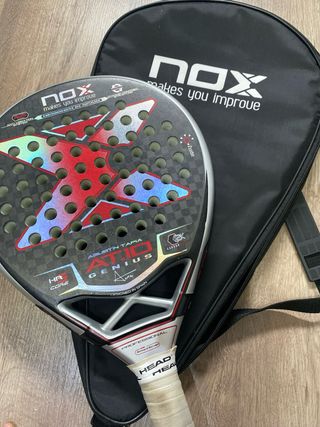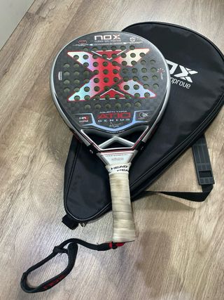 Vendo pala de pádel NOX AT10 Genius, modelo de Agustín Tapia. Pala muy equilibrada, con gran control y buena potencia, ideal para jugadores de nivel medio–alto. ✅ Muy buen estado general ✅ En la última foto se ve que no tiene mas que un un poco saltada la pintura no es ni pique ✅ Sin grietas ni golpes estructurales ✅ Muy cómoda y estable ✅ Núcleo HR3 y carbono ✅ Incluye funda original NOX ✅ Se entregaria con overgrip nuevo Se vende por cambio de pala. Lista para jugar. Precio negociable.
