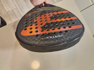 Pala en buen estado. Roces por el uso. De ahí el precio pero esta perfecta para jugar.. La vendo porque me han regalado otra. Envíos por in post Pala de pádel Bullpadel Vertex 03. - Diseño con acabado en carbono y detalles naranjas. - Grip blanco. - Cordón negro.