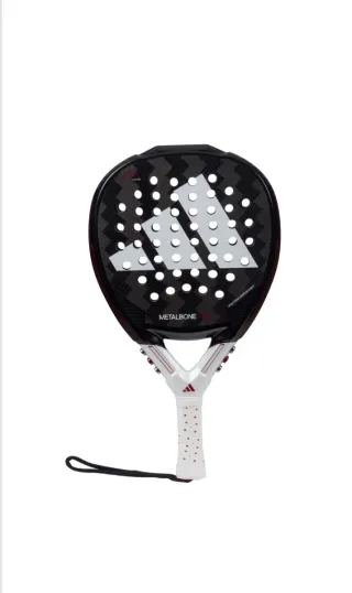 Pala de pádel Adidas Metalbone. - Diseño en negro con detalles blancos y rojos. - Logo de Adidas en blanco. - Nombre del modelo METALBONE visible. Está nueva y el precio es negociable, para más información hablarme al 674676405