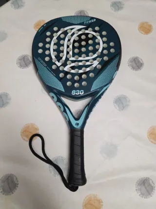 Pala de pádel Artengo modelo POWER 830. - Pala de pádel con diseño moderno. - Color verde y negro, parece azul en las fotos. - Incluye cordón de seguridad.