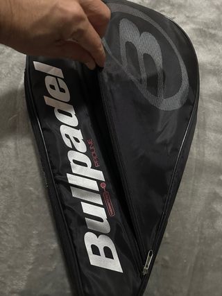 Funda para pala de pádel de la marca Bullpadel. - Color negro con ribete rojo. - Diseño con logo de la marca.