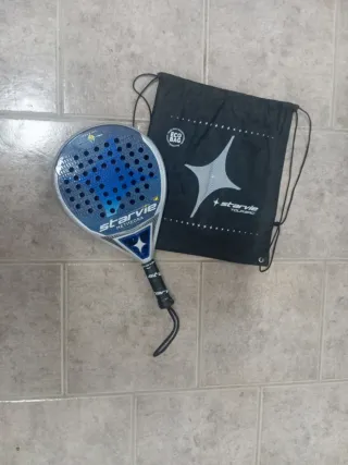 Pala de pádel Starvie Metheora con funda de regalo. - Pala de pádel Starvie. - Modelo Metheora. - Incluye funda de tela. - Diseño en azul y plateado.