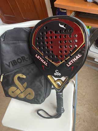 Set de pádel con pala VIBOR-A LETHAL y mochila a juego. - Pala de pádel VIBOR-A LETHAL. - Mochila negra con logo dorado VIBOR-A. - Cremalleras con detalle VIBOR-A. - Tiene un solo uso