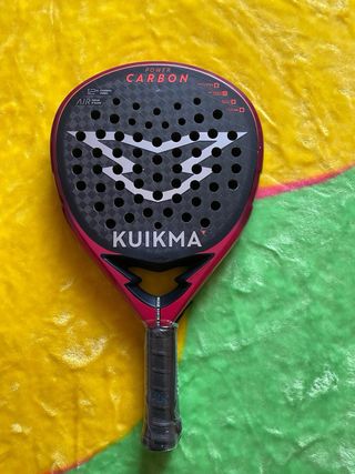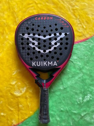 Pala de pádel Kuikma Power Carbon. - Pala de pádel con acabado en carbono. - Diseño en color negro y rojo. - Incluye funda. pala completamente nueva sin ningún partido con precintado y mas información al privado (precio negociable)