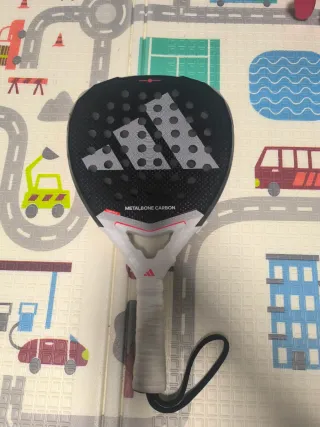 Pala de pádel Adidas Metalbone Carbon con un diseño moderno y deportivo. - Pala de pádel. - Modelo Metalbone Carbon. - Marca Adidas. Pocos partidos, no me hago a ella. Puedo cambiarla por alguna otra del mismo valor.