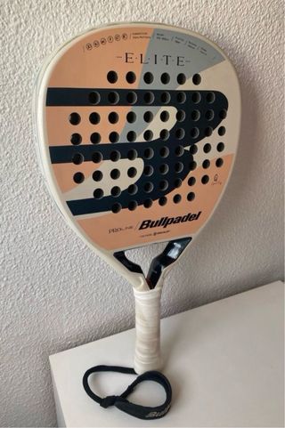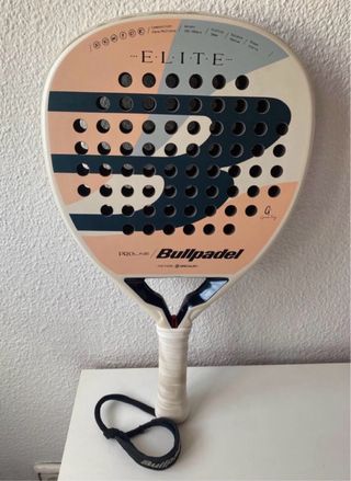 Pala de pádel Bullpadel Élite 2025, modelo Gemma Triay. - Diseño con acabado en colores pastel y detalles en azul marino. - Firma de Gemma Triay. - Poco uso sin ningun golpe ni arañazo. -353 gr de fabrica.