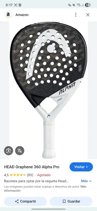 Nueva precintada de tienda!! garantia de 6 meses de tienda!! pala igual que la que compras en tienda, lo unico que pone test para que los clubs o tiendas las abran y pruebe la gente, pero es la misma pala que compras en tienda por 339 euros, y te ahorras un paston!!! no pierdas la tuya a un precio top top!! no rebajo precio!!! No negociable!!!!