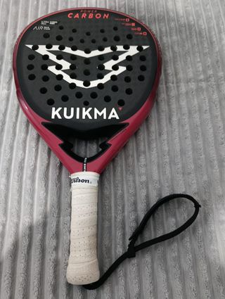 Pala de pádel Joma Slam Pro con acabado en carbono. - Diseño moderno y llamativo. - Marco resistente para mayor durabilidad. - Superficie con agujeros para mejor aerodinámica. En perfecto estado, sin un rasguño y con protector.