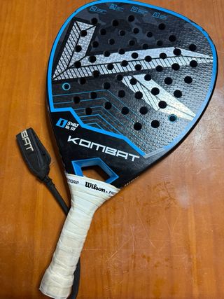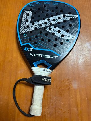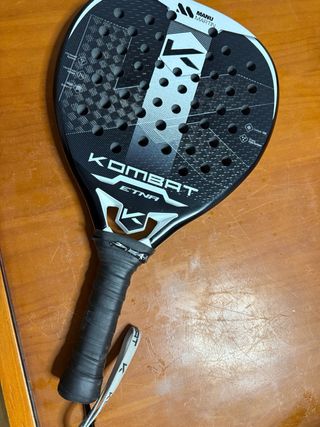 Pala de pádel Kombat Onyx - Superficie con acabado rugoso 3D kombat. -Pala muy polivalente. - La he utilizado una vez y fue para dar clase como monitor para probarla ya que fue un regalo. - Tiene un minúsculo roce que fue al coger una bola del suelo para tira la ultima pelota del carro . PRECIO NO NEGOCIABLE
