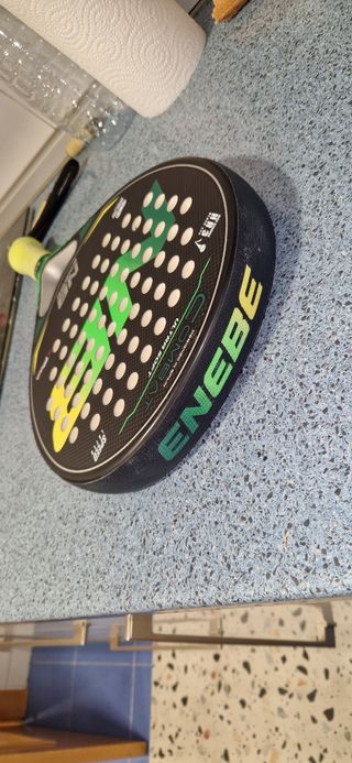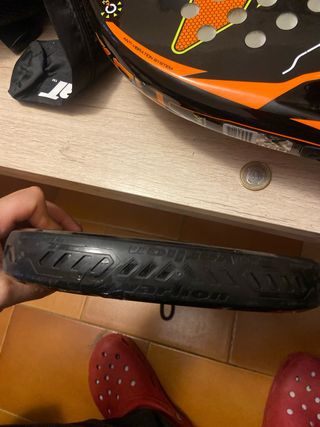 Pala muy equilibrada, con buena salida de bola y gran tacto. Tiene dos grietas visibles (no afectan demasiado al juego), por eso la dejo a buen precio. Perfecta como pala de entrenamiento, repuesto o para quien empieza y quiere calidad sin gastar mucho. Entrego limpia y con grip cambiado hace poco. Características: - Marco 100 % carbono - Superficie de carbono 12K - Núcleo Black EVA - Acabado mate 💬 Precio ajustado. Envío solo por Wallapop con seguro.