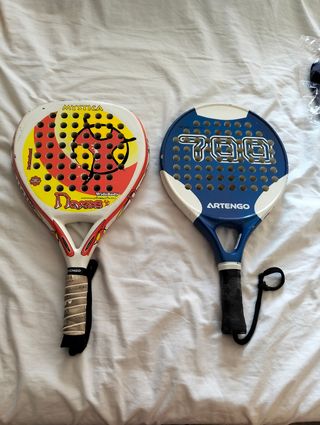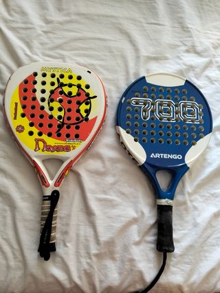Vendo dos palas de pádel usadas, una Artengo y otra Mystica. Están en buen estado, listas para usar. - Marca: Artengo y Mystica. - Modelo: 700 y Daxos. - Ideales para principiantes o jugadores intermedios.