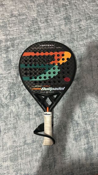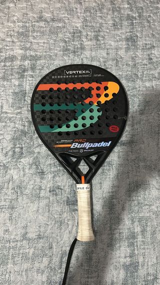 Vendo pala de pádel Bullpadel Vertex 03 en buen estado. Tiene algunos pequeños desperfectos estéticos en la superficie, tal y como se puede apreciar en las imágenes. - Modelo: Vertex 03 - Marca: Bullpadel - Tecnología Power 100/90 Pro - Act Channel
