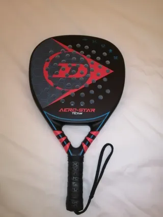 Pala de pádel Dunlop Aero-Star Team en color negro con detalles en rojo y azul. - Diseño con acabado mate. - Forma de lágrima. - Agarre texturizado.